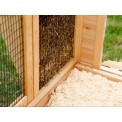 Cușca pentru iepuri din lemn cântărește aproximativ 35 kg. Acoperișul cuștii este acoperit cu o învelișă din plastic rezistent la intemperii . Cu toate acestea, recomandăm amplasarea cuștii sub un adăpost pentru a o proteja de ploaie, zăpadă și lumina directă a soarelui. Cușca din lemn este tratată la suprafață cu un strat protector de bază. Pentru o durată de viață mai lungă, stratul protector trebuie reînnoit, ca în cazul oricărui tip de lemn.