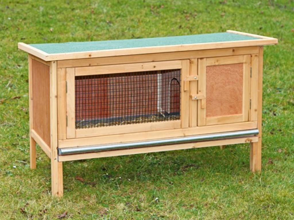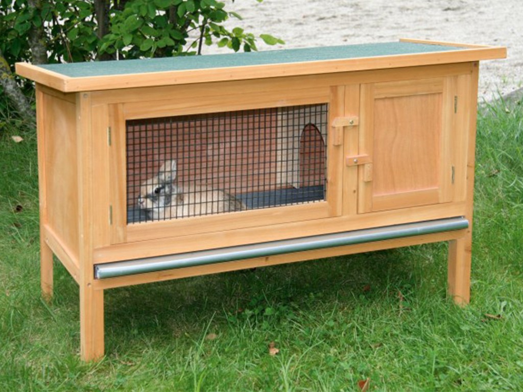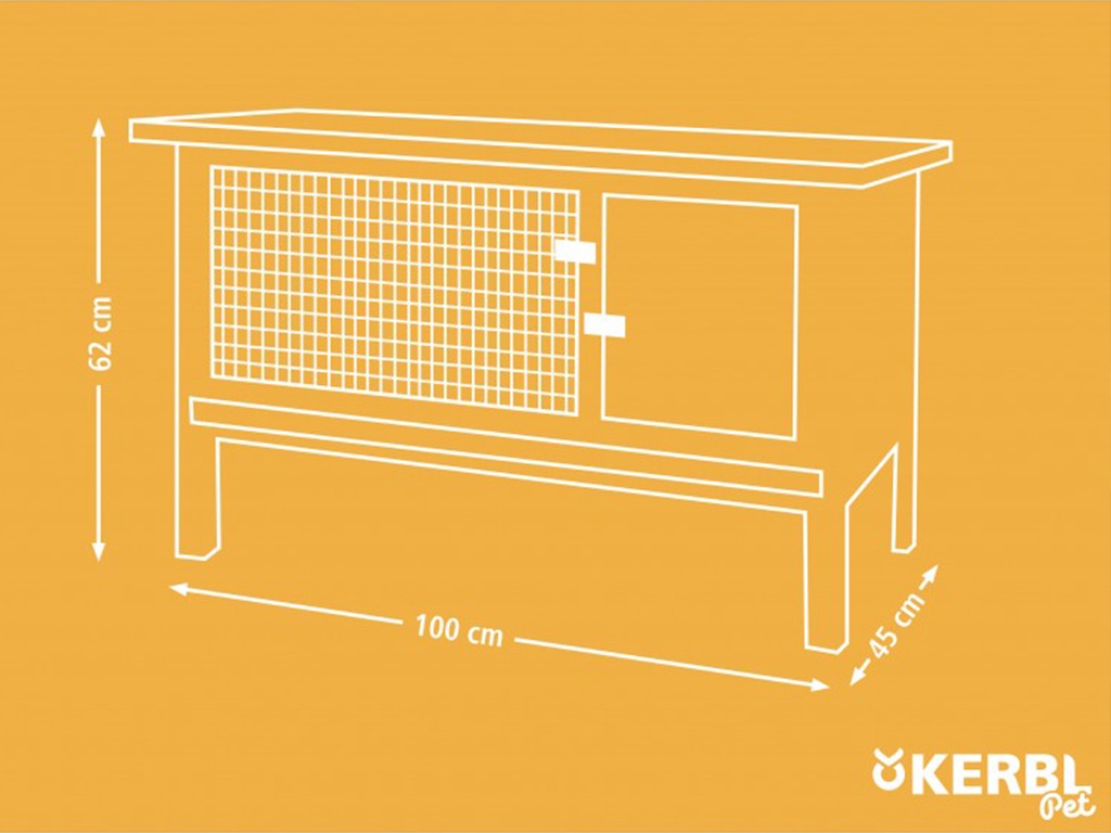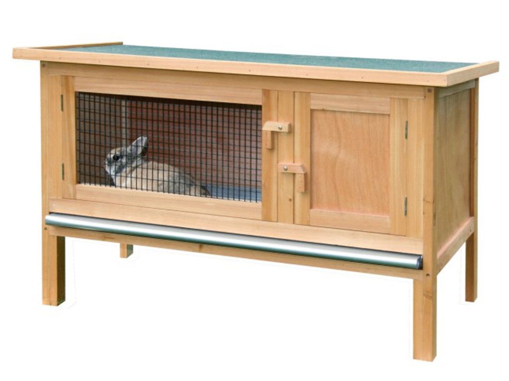 Cușcă de iepuri din lemn pentru un iepure, iepure pitic sau alt rozător mic , cu dimensiunile 100x45x62 cm. Aceasta este o cușcă perfectă pentru iepuri, echipată cu o tavă detașabilă pentru bălegar. pentru curățare ușoară. Două uși și un acoperiș rabatabil asigură accesul fără probleme la cușca pentru iepuri.