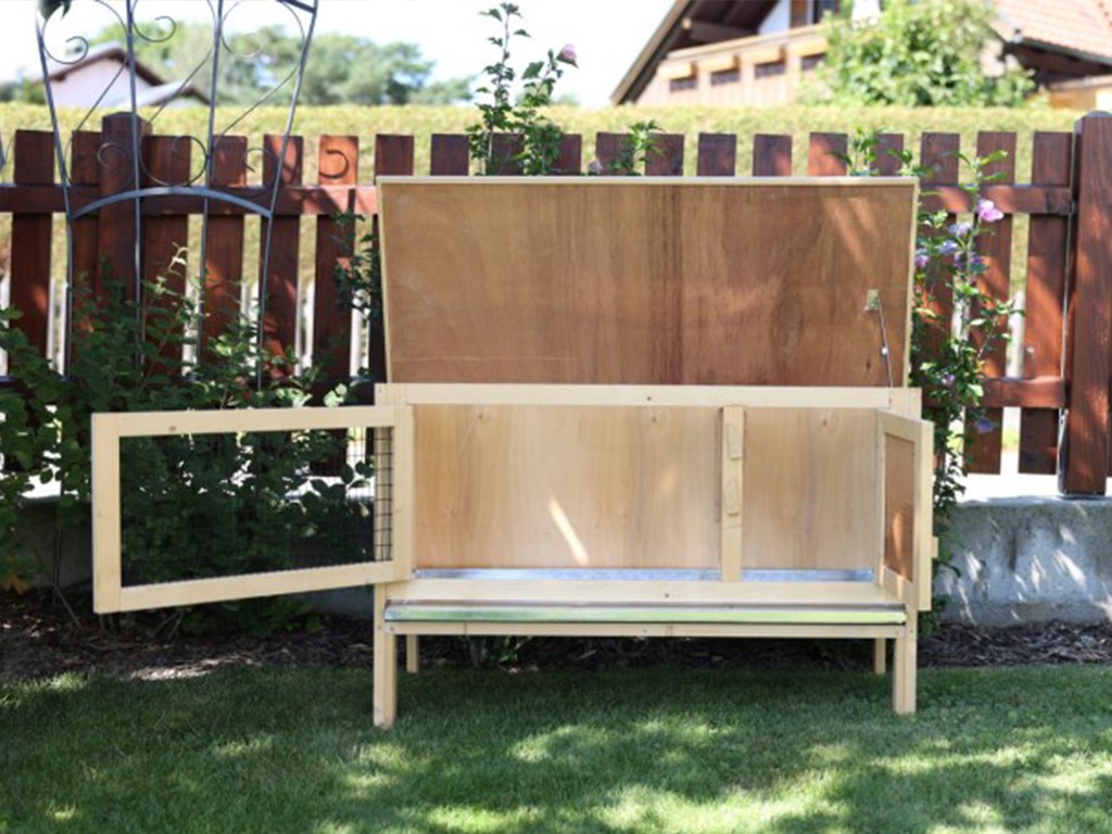Puteți curăța cușca de iepuri în doar câteva minute. Munca este mult mai ușoară datorită tăvii de gunoi galvanizate detașabile , pe care o puteți scoate pur și simplu din cușcă, curăța și... De asemenea, veți aprecia acoperișul rabatabil atunci când veți întreține cușca de iepuri.