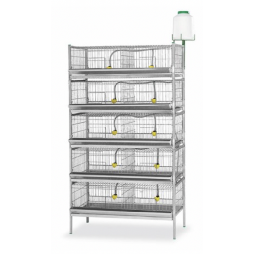 Cușcă pentru prepelițe - cușcă pentru prepelițe japoneze sau chinezești - echipată cu un jgheab de hrănire cu adăpătoare. Cușca are dimensiunile de 1050 x 620 x 335 mm, dimensiunile pieselor 500 x 530 x 265 mm. Acesta reprezintă un etaj suplimentar pentru cușca cu codul 10850.