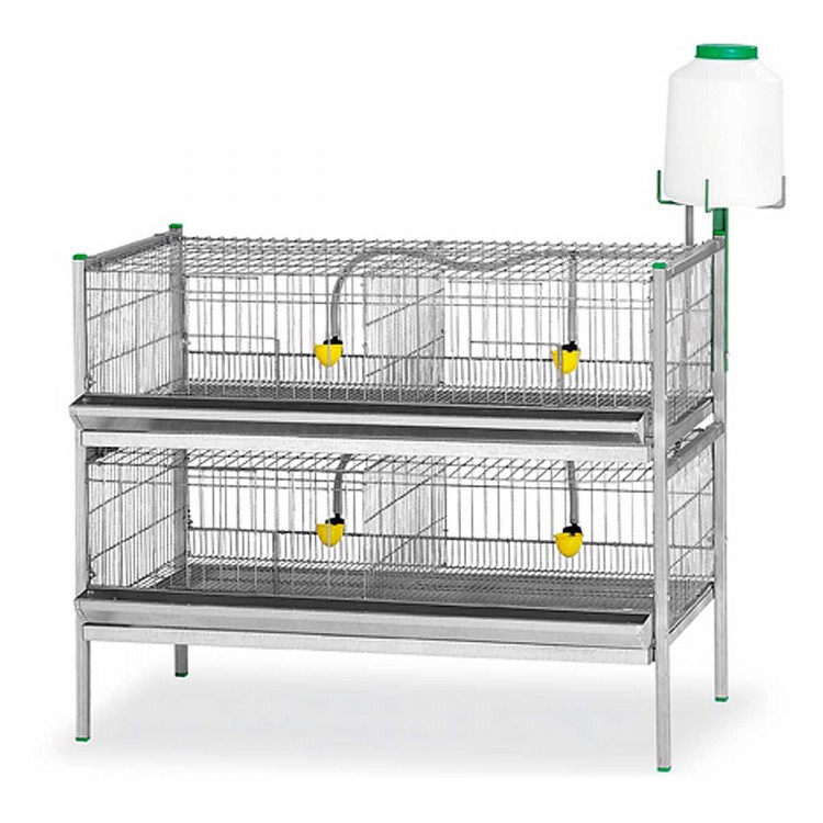 Cușcă pentru prepelițe - cușcă pentru prepelițe japoneze sau chinezești - echipată cu un jgheab de hrănire cu adăpătoare. Cușca are dimensiunile de 1050 x 620 x 835 mm, dimensiunile pieselor 500 x 530 x 265 mm