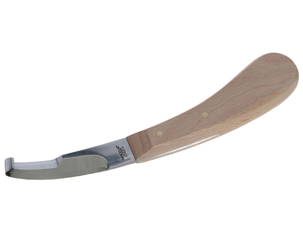 Cuțit pentru copite, pentru îngrijirea bovinelor, ovinelor și caprelor, cu două muchii , lungimea lamei 78 mm , lățimea lamei 17 mm , lungimea de tăiere 35 mm/ 65 mm .