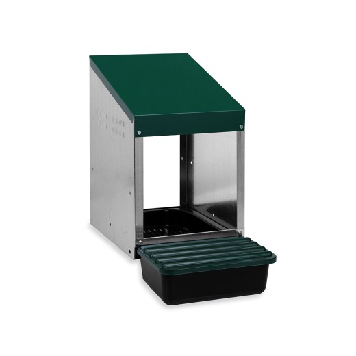 Cuib pentru găini ouătoare cu coș de colectare a ouălor, pentru un singur loc , capacitate de până la 5 găini ouătoare per coș, partea de jos a cuibului este înclinată, ouăle se rostogolesc singure în coșul de colectare, fabricat din metal galvanizat cu fund din plastic, culoare verde . Puteți așeza pur și simplu cuibul pe pământ în coșul de găini sau îl puteți agăța pe perete , foarte ușor de curățat , dimensiuni: 48 cm lungime x 27 cm lățime x 52 cm înălțime.