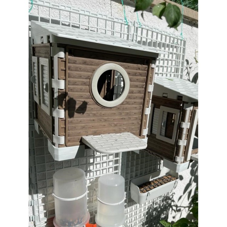 - Ferestre practice : Ferestrele sunt complet funcționale - pot fi deschise și închise, asigurând o ventilație optimă în zilele călduroase și acces convenabil la cușcă.