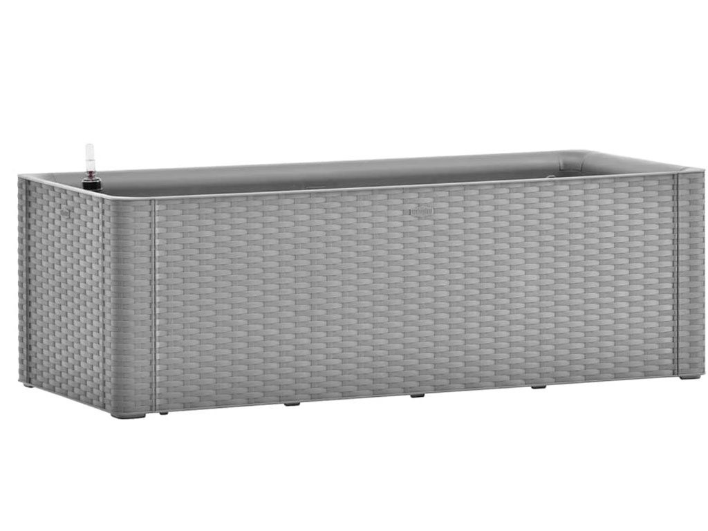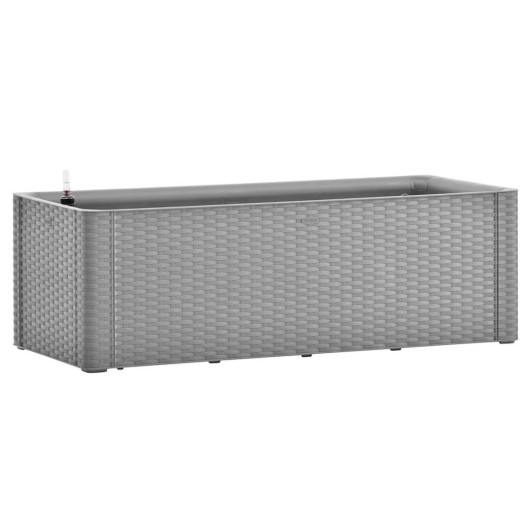 Cutie cu auto-udare , pentru interior și exterior , cu indicator al nivelului apei, fabricată din polipropilenă, culoare gri, capacitate 90l, dimensiuni 100x43x33cm.
