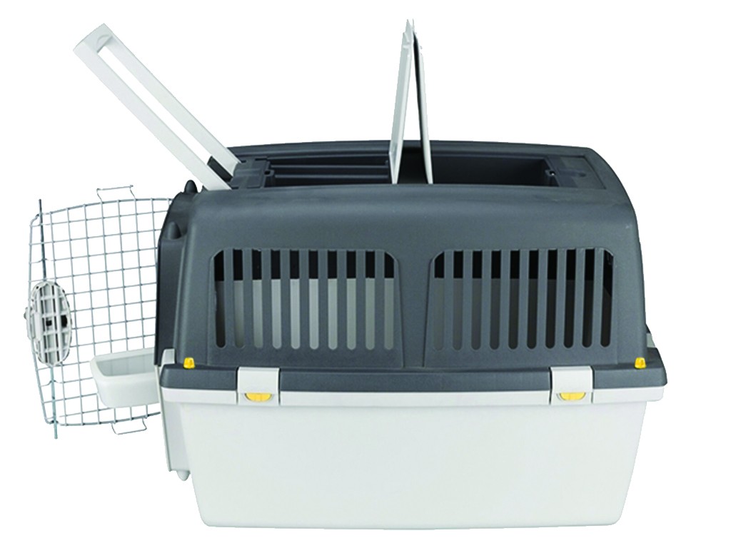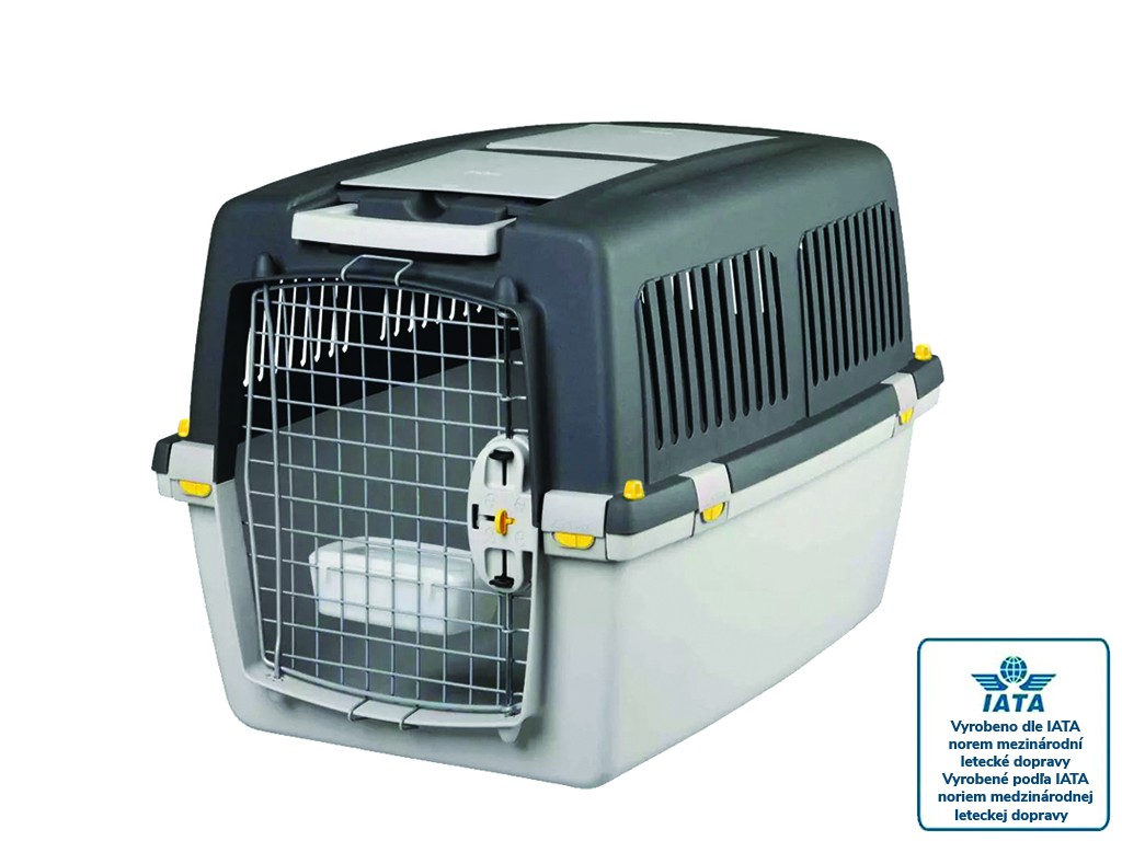 Pentru câini de până la 18 kg, concepută conform Asociației Internaționale de Transport Aerian IATA pentru transportul în avion, capacul și cuva sunt conectate prin cleme, 4 șuruburi în fiecare colț ca dispozitiv de siguranță, ușă frontală metalică vopsită și încuietoare, deschiderea ușii poate fi setată pe dreapta sau stânga , mâner retractabil pentru tragerea cuștii, două cutii de depozitare pe acoperiș, bol de 500 ml cu margini anti-vărsare, dimensiuni interne 64,5x46x41cm, dimensiuni externe 71x51x50cm.