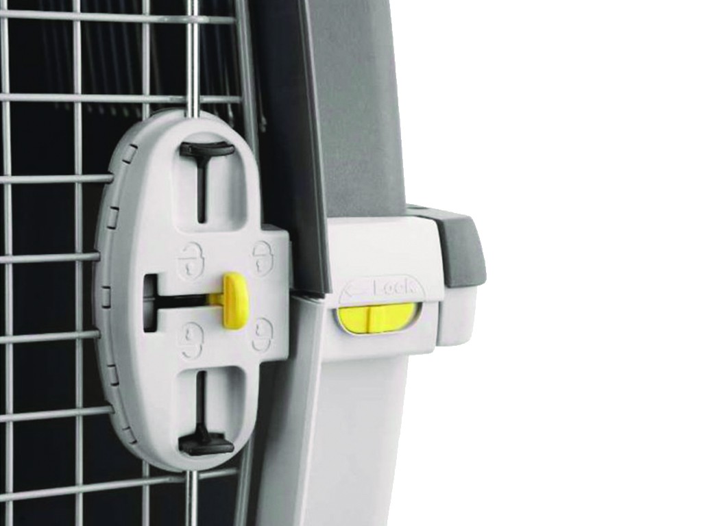 Cutia de transport este fabricată din plastic de înaltă calitate, durabil și rezistent . Cutia este echipată cu mai multe caracteristici de siguranță pe care le veți aprecia. Cutia este alcătuită din două părți, partea de jos și capacul, care sunt prinse una de cealaltă cu opt cleme cu blocare de siguranță , pe care le puteți fixa și cu patru șuruburi în fiecare colț al cutiei , pentru o stabilitate și mai mare a acesteia. Ușa metalică frontală, cu tratament anticoroziv , are o blocare de siguranță, datorită căreia ușa nu se va deschide în timpul transportului. În plus, puteți fixa ușa cu curele. Grila de pe ușă, cu un strat protector împotriva coroziunii, și ferestrele practice cu viziere de pe lateralele cutiei asigură o circulație corectă a aerului.