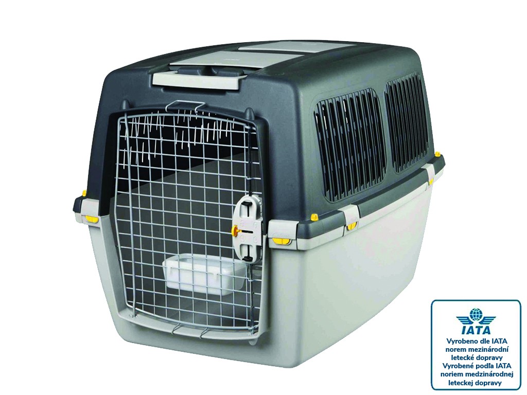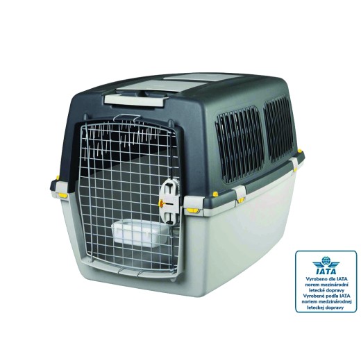 Pentru câini cu greutatea de până la 25 până la 30 kg, concepută conform Asociației Internaționale de Transport Aerian (IATA) pentru transportul în avion, capacul și cuva sunt conectate prin cleme, 4 șuruburi în fiecare colț ca dispozitiv de siguranță, ușă frontală metalică vopsită și cu încuietoare, deschiderea ușii poate fi reglată pe dreapta sau stânga , mâner retractabil pentru tragerea cuștii, două cutii de depozitare pe acoperiș, bol de 500 ml cu margini anti-vărsare, dimensiuni interne 72,5x53x50,5 cm, dimensiuni externe 81x61x60 cm.