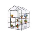 Sera are o folie de acoperire din PVC care menține un microclimat stabil . Structura serei este realizată din tije metalice cu un diametru de 16 mm. Asamblarea este foarte ușoară și rapidă, structurile se îmbină pur și simplu cu un clic, foaia se întinde și se atașează de aceasta . În interiorul serei există 6 rafturi practice pe care puteți așeza recipiente cu plante. Pentru acces facil, sera are o ușă rulantă cu două fermoare care pot fi închise sau deschise după cum este necesar și legate în partea de sus cu un șiret.