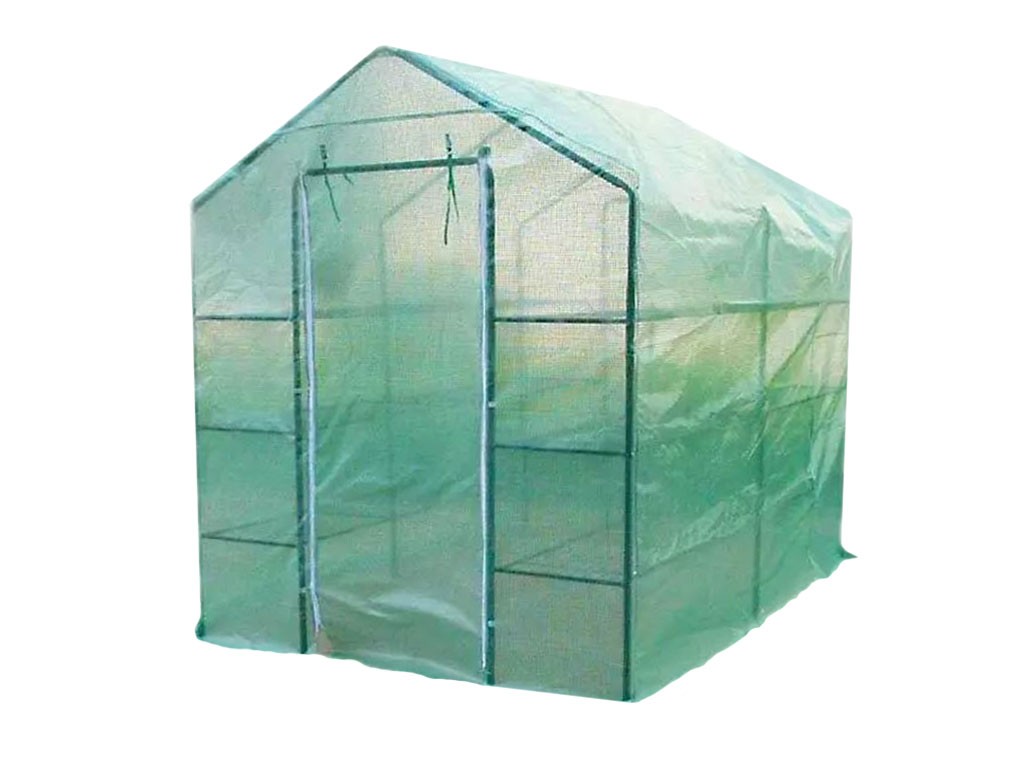 Sera are o folie de acoperire din PVC care menține un microclimat stabil . Structura serei este realizată din tije metalice cu un diametru de 16 mm. Asamblarea este foarte ușoară și rapidă, structurile se îmbină pur și simplu cu un clic, foaia se întinde și se atașează de aceasta . În interiorul serei există 6 rafturi practice pe care puteți așeza recipiente cu plante. Pentru acces facil, sera are o ușă rulantă cu două fermoare care pot fi închise sau deschise după cum este necesar și legate în partea de sus cu un șiret.