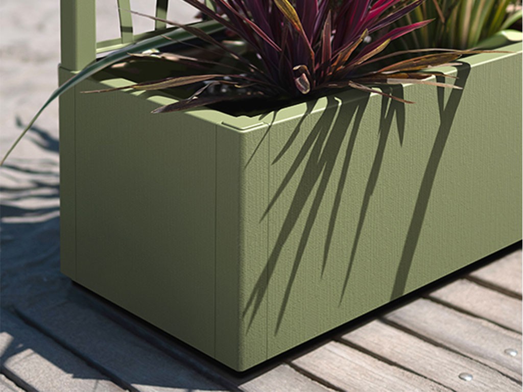 Cutie cu fund de drenaj, pentru uz exterior , fabricată din polipropilenă, culoare verde măsliniu, volum 80l, dimensiuni 80x36x35cm.