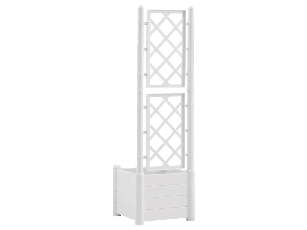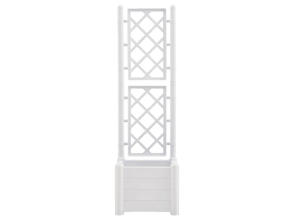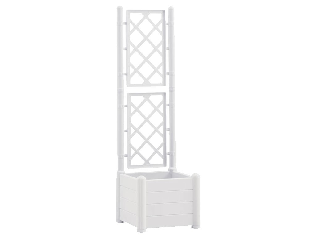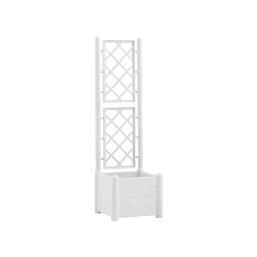 Cutie cu grilă, cu fund de drenaj, pentru uz exterior , fabricată din polipropilenă, culoare albă, capacitate 30l, dimensiuni 43x43x142cm.
