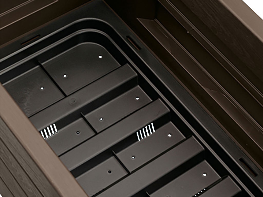 Fundul unic de drenaj asigură o udare ideală , cu această cutie nu mai trebuie să vă faceți griji că plantele dumneavoastră au prea multă apă. Datorită fundului de drenaj, cutia oferă plantelor condiții ideale pentru creșterea și fertilitatea lor corespunzătoare , deoarece excesul de apă se scurge prin găurile din fundul cutiei.