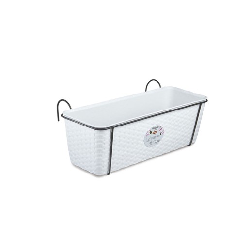 Cutie suspendată pentru balcon, cu suport metalic vopsit, cu fund de drenaj, pentru exterior , fabricată din polipropilenă, culoare albă,