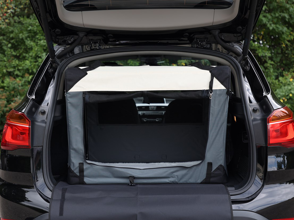 Cutia de transport este ideală pentru proprietarii de câini care doresc să asigure confortul și siguranța animalului lor de companie pe drum. Este potrivită atât pentru călătorii scurte, cât și pentru călătorii mai lungi cu mașina. Cutia de transport este concepută pentru câinii din portbagajul unei mașini. sau pe bancheta din spate a unei mașini. Dimensiunile exterioare ale cutiei de transport sunt 92x65x66 cm. Animalul tău de companie ar trebui să aibă suficient spațiu pentru a se ridica în picioare și a se întoarce confortabil în cușcă.