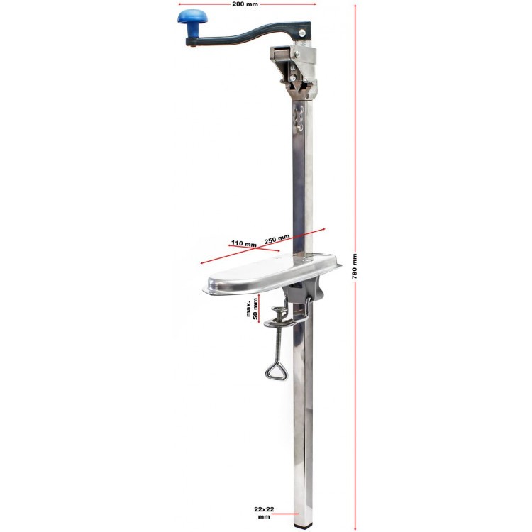 Deschizător de conserve profesional pentru deschiderea conservelor fără prea mult efort. Datorită funcționării simple și rapide și designului robust (lame din oțel călit / carcasă din fontă), deschizătorul este potrivit pentru deschiderea conservelor în sectoarele privat și de catering. Datorită înălțimii variabile, chiar și conserve foarte mari, cum ar fi conservele pentru... klobs . Pachetul include și o clemă cu șurub pentru fixarea pe un blat de lucru sau o masă. Pentru o fixare optimă, în special în uz profesional, deschizătorul trebuie înșurubat pe blat folosind găurile din baza deschizătorului.