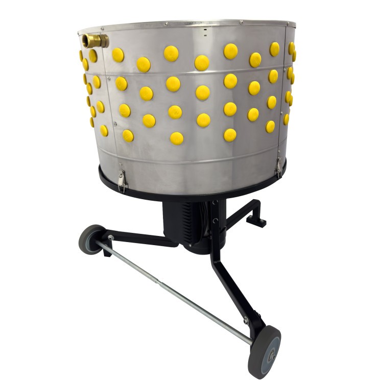 Nou pe piața noastră! Smulgător cu tambur din oțel inoxidabil PROFI-A. Smulgătorul este alimentat de un motor de 1100 W. Este echipat cu 164 degete de smulgere de tip 0300E , concepute pentru smulgerea păsărilor de apă și a păsărilor de curte care sapă vizuini. Tamburul smulgător poate conține până la 3 păsări de curte cu o greutate totală de 13 kg . Există un furtun de clătire în jurul tamburului , datorită căruia penele sunt spălate din tambur în timpul smulgerii . Smulgătorul este detașabil, astfel încât oferă o curățare foarte ușoară. Este echipat cu două roți de cauciuc pentru o mișcare convenabilă . Dimensiuni: 739x462x976 mm.
