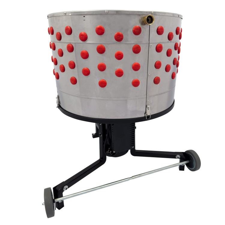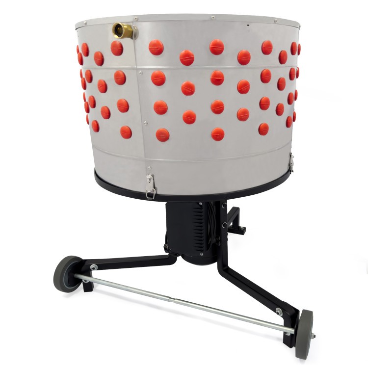 Nou pe piața noastră! Smulgător cu tambur din oțel inoxidabil PROFI-B. Smulgătorul este acționat de un motor de 1100 W. Este echipat cu 164 degete de smulgere de tip 0300E , concepute pentru smulgerea păsărilor de apă și a păsărilor de curte care sapă vizuini. Tamburul smulgător poate conține până la 3 păsări de curte cu o greutate totală de 13 kg . Există un furtun de clătire în jurul tamburului , datorită căruia penele sunt spălate din tambur în timpul smulgerii . Smulgătorul este detașabil, astfel încât oferă o curățare foarte ușoară. Este echipat cu două roți de cauciuc pentru o mișcare convenabilă . Dimensiuni: 739x462x976 mm.