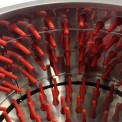 Smulgătorul nostru de păsări de curte este foarte ușor de demontat și curățat pentru utilizare ulterioară. Există cleme metalice pe lateralul dispozitivului, pe care le puteți folosi pentru a scoate întregul tambur și a curăța smulgătorul.