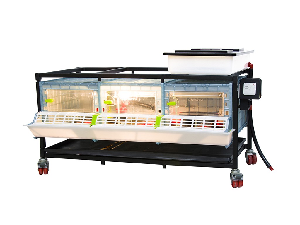 Clădiță de creștere a păsărilor potrivită pentru creșterea a 40 până la 45 de pui , cu tehnologie patentată Comfortplast , dimensiuni 104 x 60 x 59 cm . Este o cușcă cu un singur nivel, cu 3 compartimente , care sunt echipate cu o bandă de încălzire cu termostat reglabil și o priză pentru bec , hrănitoare cu grilă pentru a preveni risipa de furaje, adăpătoare cu alimentare cu apă dintr-un rezervor de 8 litri .