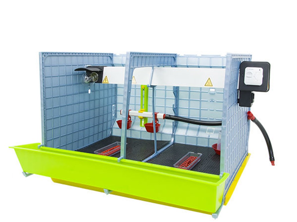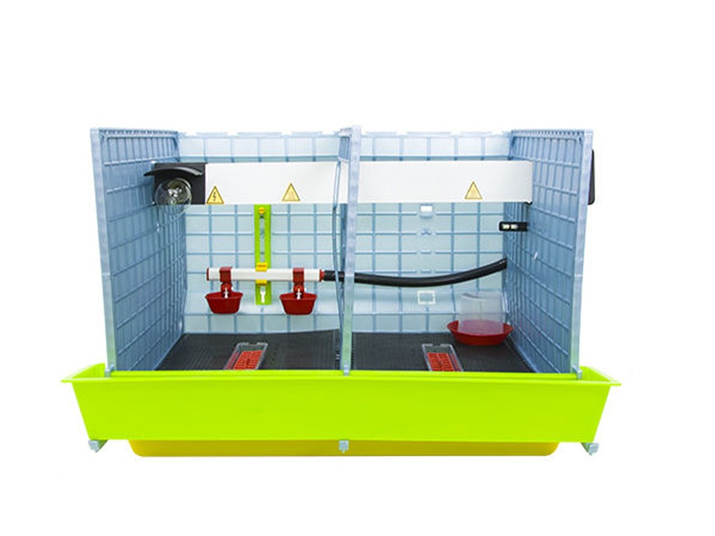 Clădiță de creștere a păsărilor potrivită pentru creșterea a 25 până la 30 de pui , cu tehnologie patentată Comfortplast , dimensiuni 72 x 64 x 63 cm . Este o cușcă cu un singur nivel, cu 2 compartimente , care sunt echipate cu o bandă de încălzire cu termostat reglabil și o priză pentru bec , hrănitoare cu grilă pentru a preveni risipa de furaje, adăpătoare cu alimentare cu apă dintr-un rezervor de 4 litri .