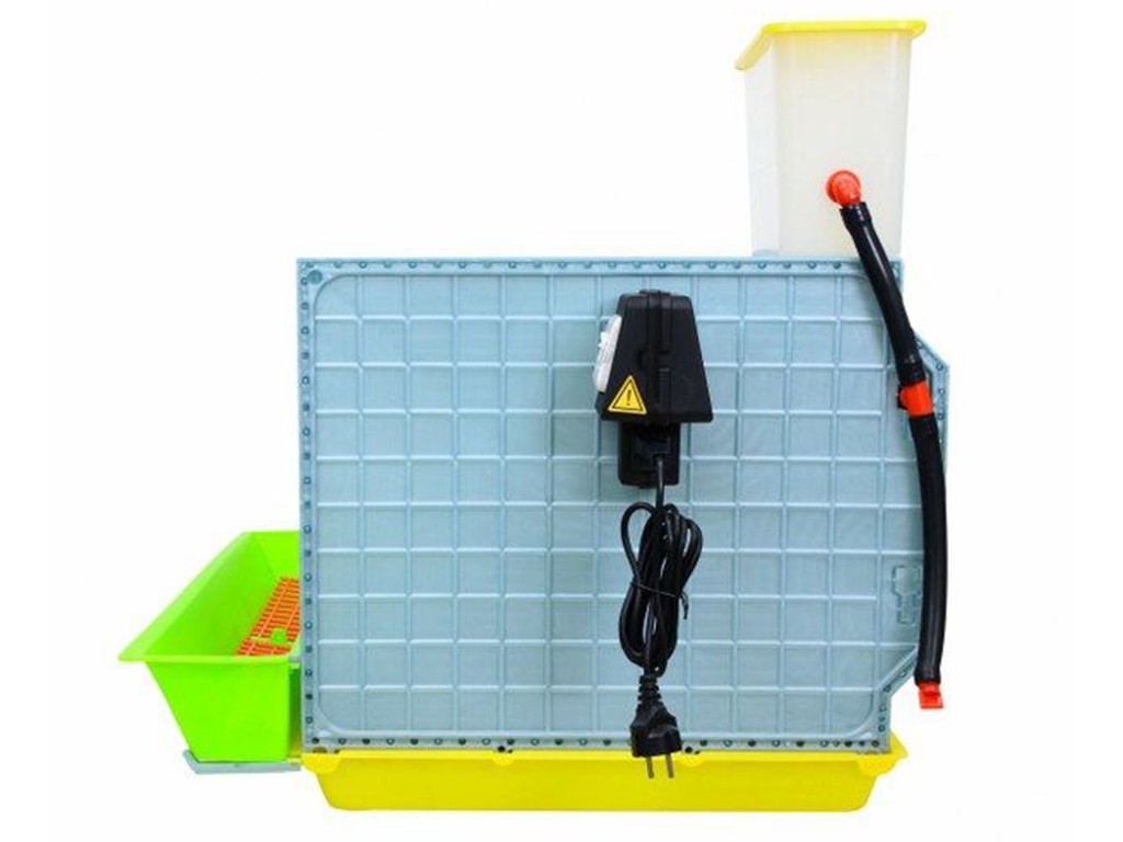 Căldura și lumina necesare pentru creșterea puilor eclozați sunt asigurate de unitatea automată de încălzire a cotețului de păsări. Unitatea este echipată cu un termostat electronic, care permite reglarea temperaturii în intervalul de la 0 la 40° C. Partea de încălzire a unității este , desigur, echipată cu un capac de protecție care împiedică puii să atingă cablurile de încălzire și nu există riscul de arsuri. Unitatea de încălzire oferă, de asemenea, opțiunea unei surse de lumină stabile folosind un bec (nu este inclus în pachet). Puterea necesară a becului este determinată în funcție de temperatura din camera în care va fi amplasat cotețul de păsări și nu trebuie să depășească 75W. Pentru mai multe informații, consultați instrucțiunile de mai jos.