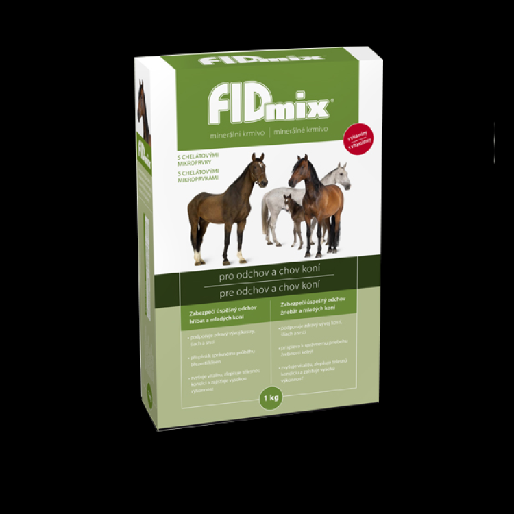 FIDmix® este un hrană mineral-vitaminică pentru cai de toate vârstele. La mânji, asigură dezvoltarea corectă a scheletului, tendoanelor și blănii. La caii adulți, FIDmix® crește vitalitatea, asigură o sănătate bună, reproducere, condiție fizică bună și performanțe ridicate. Pentru animalele mai în vârstă, oferă acces facil la vitamine, macroelemente, microelemente și aminoacizi. FIDmix® contribuie, de asemenea, la buna desfășurare a gestației și lactației la iepe. Conține toate vitaminele și mineralele necesare într-o doză optimă pentru a completa și echilibra nevoile lor zilnice.