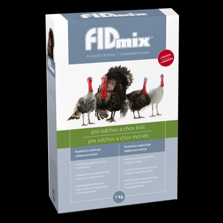 FIDmix este un furaj mineral-vitaminic dezvoltat special pentru creșterea și îngrășarea curcanilor. Compoziția sa conține substanțe biologic active, cum ar fi vitamine, minerale, lizină, metionină și sare furajeră, care permit suplimentarea unei rații furajere incomplete la nivelul necesar. În acest fel, furajul optimizat va asigura o sănătate bună și viabilitate a curcanilor, va îmbunătăți creșterea în greutate și eficiența furajară.