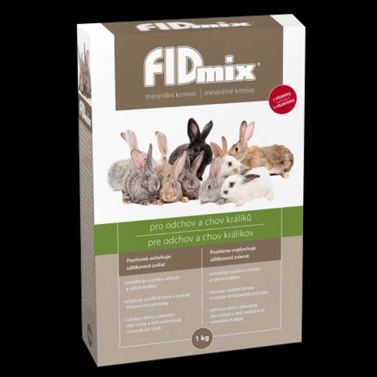 FIDmix este un furaj mineral-vitaminic conceput pentru reproducerea și creșterea iepurilor în ferme mici și mijlocii. Acest furaj se adaugă în rația de hrană pentru iepuri ca supliment și echilibru al furajelor tradiționale. Vitaminele, mineralele, metionina și sarea furajeră conținute în FIDmix permit crescătorilor să optimizeze rația de hrană și să atingă nivelul dorit de nutriție. Rația de hrană optimizată are un efect pozitiv asupra gestației și lactației femelelor, viabilității și creșterii puietului, îmbunătățește utilizarea hranei și are un efect benefic asupra calității blănii.