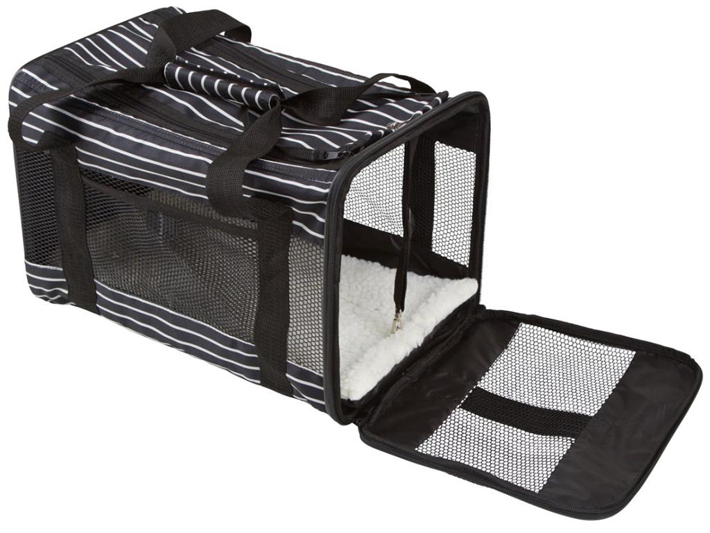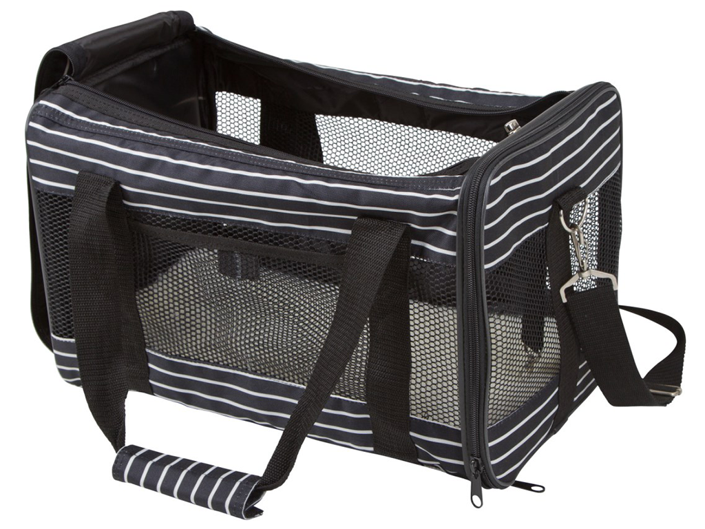 Geanta de călătorie este concepută pentru câini și pisici mai mici, cu greutatea de până la 9 kg, și pentru rase de câini precum Chihuahua, Spitz German, Yorkshire Terrier și altele.