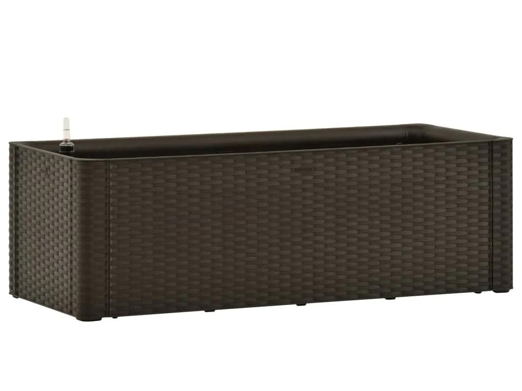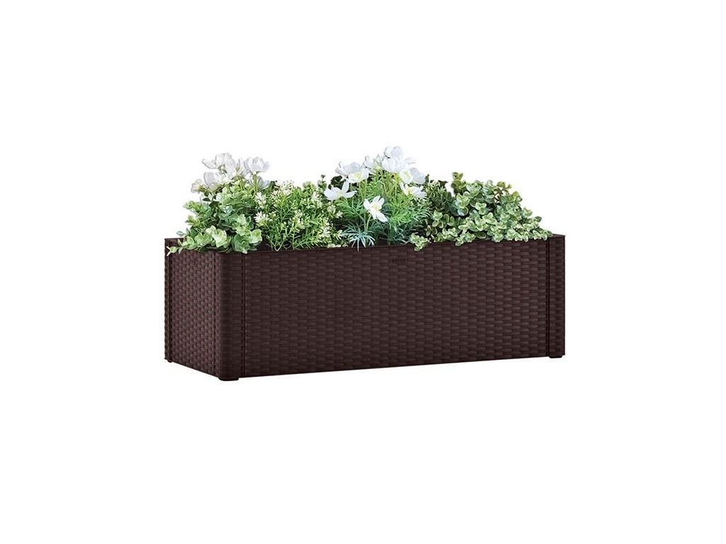 Cutie cu auto-udare , pentru interior și exterior , cu indicator al nivelului apei, fabricată din polipropilenă, culoare mocha, capacitate 90l, dimensiuni 100x43x33cm.