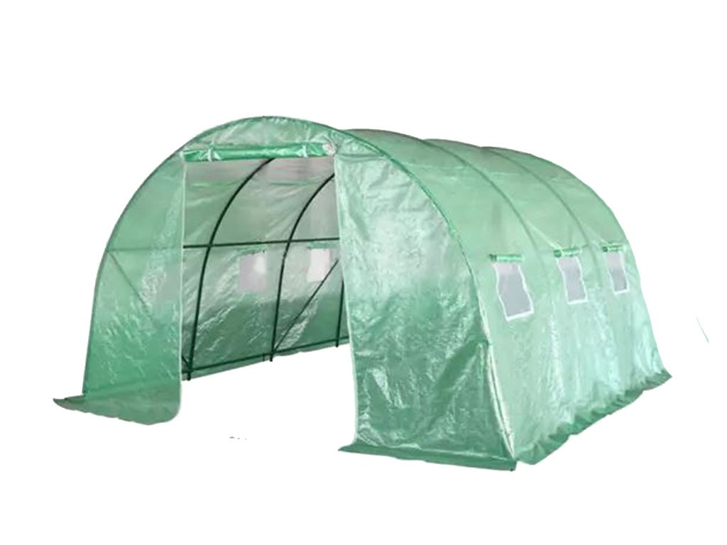 Seră din folie pentru creșterea plantelor, folie verde cu o permeabilitate de 140g/m2, fibre de sticlă/polietilenă/metal, tije de construcție cu diametrul de 25mm, 6 ferestre de ventilație pe laterale, suprafață seră din folie de 9 m2, dimensiuni 300x300x200 cm.