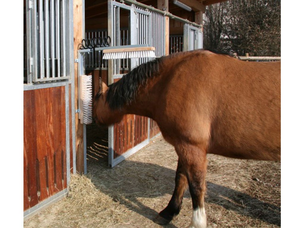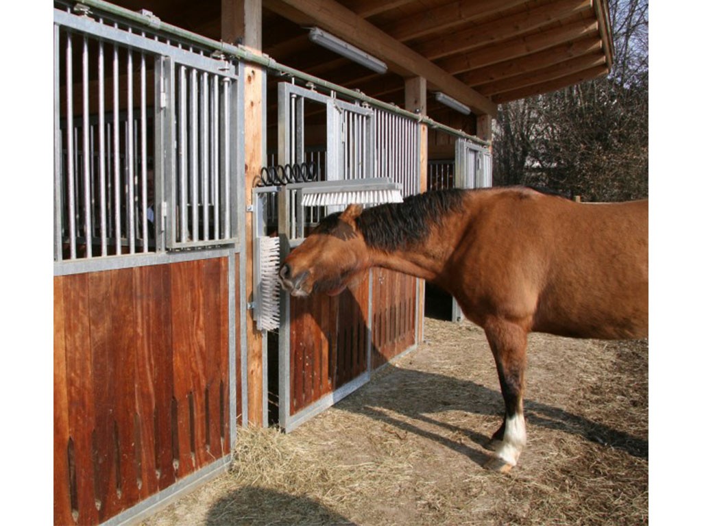 Racletă cu arc , pentru cai și bovine, construcție robustă, perie orizontală reglabilă, material suport metal, dimensiunile unei perii 50x10 cm.