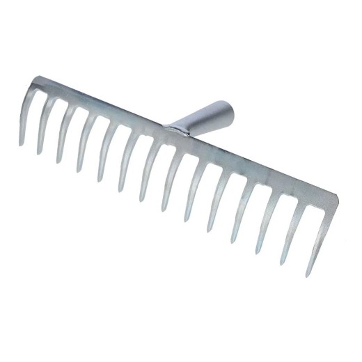 Greblă metalică, pentru utilizare versatilă , fabricată din oțel sablat și galvanizat, 14 dinți, fără mâner, diametrul manșonului mânerului 28 - 28,5 mm, lățime 36 cm.
