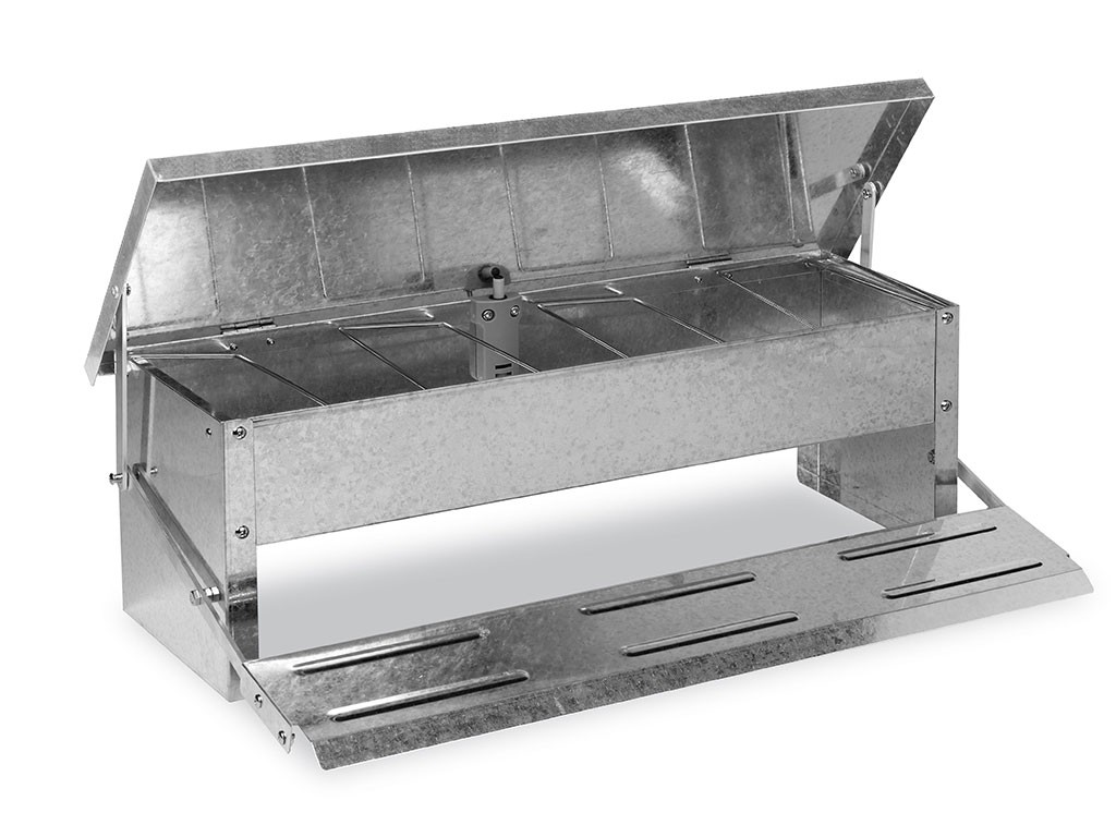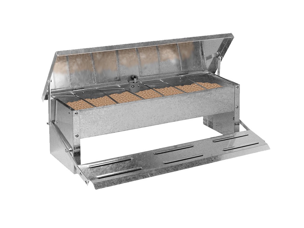 - Hrănitorul cu jgheab cu acces rapid economisește consumul de hrană, deoarece previne risipa și hrănirea nedorită a șoarecilor, vrăbiilor, turturelelor etc.