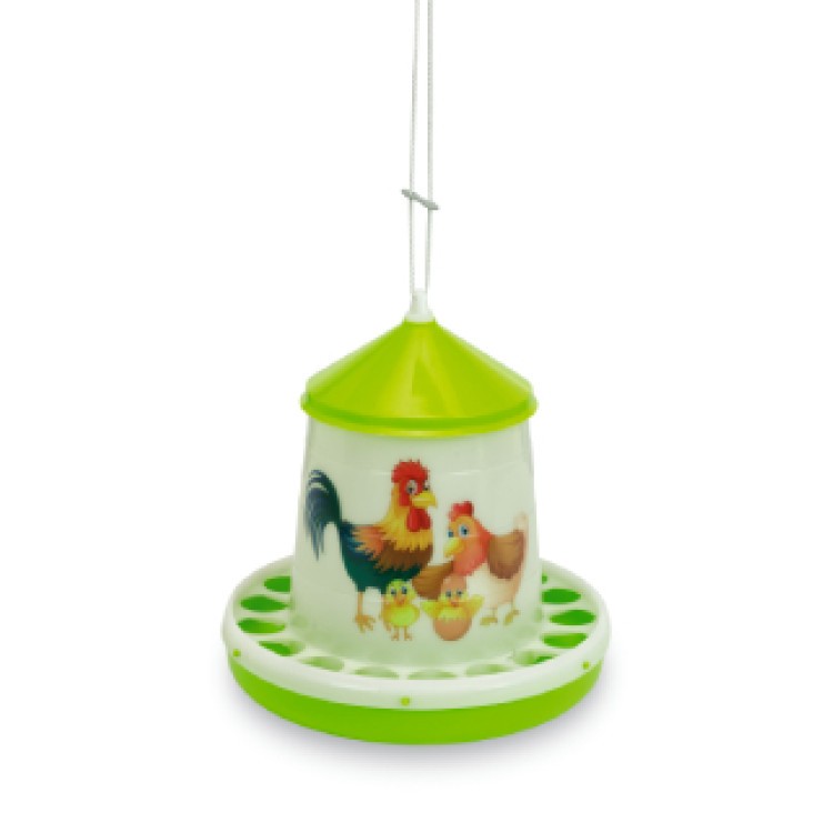 Hrănitoare pentru pui, găini, curcani, gâște, rațe și alte păsări de curte, fabricată din plastic rezistent - polipropilenă, ușor de curățat.