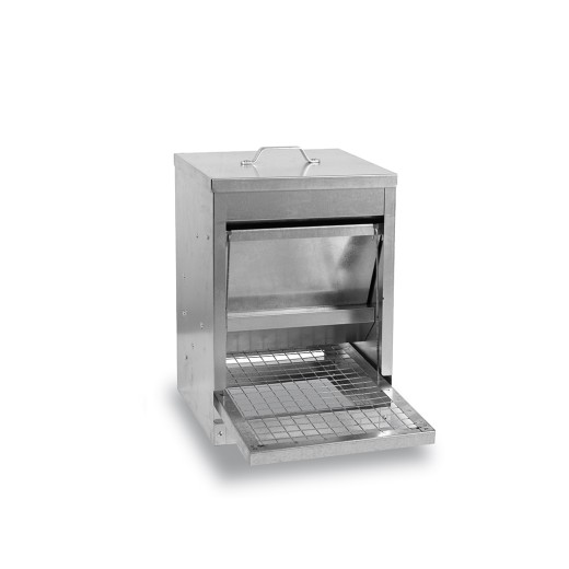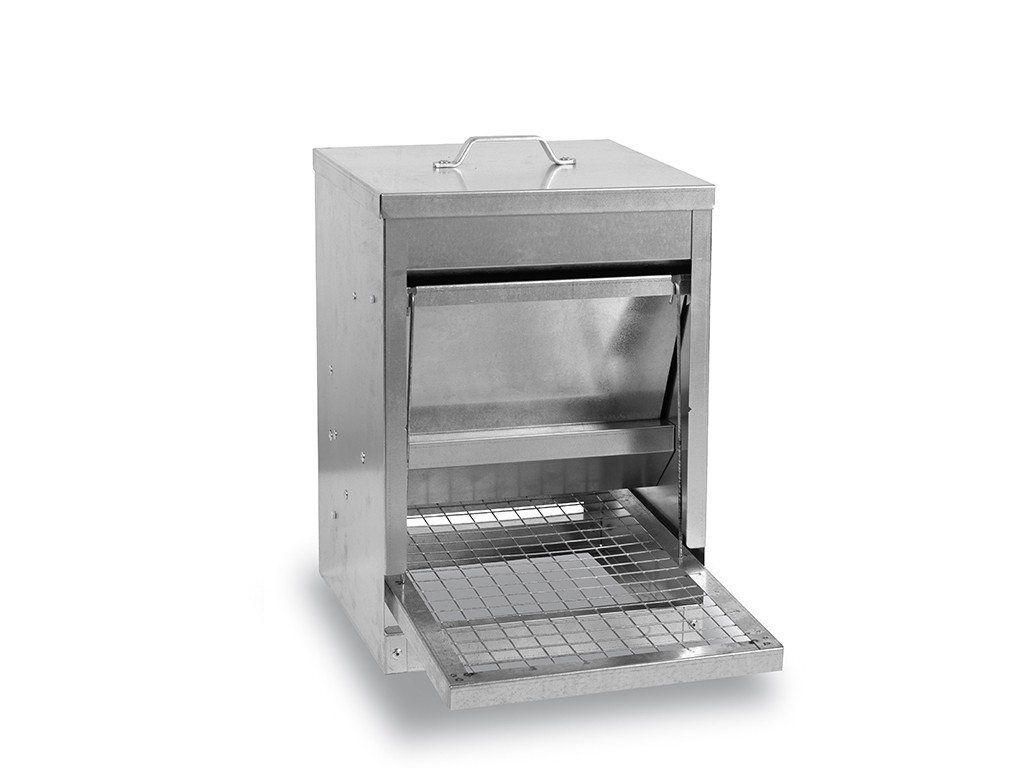 - Partea alimentatorului cu care se poate accesa este realizată din „plasă” (pătrate sudate) - avantajul este că murdăria cade prin grilă și, prin urmare, trebuie curățată mai rar