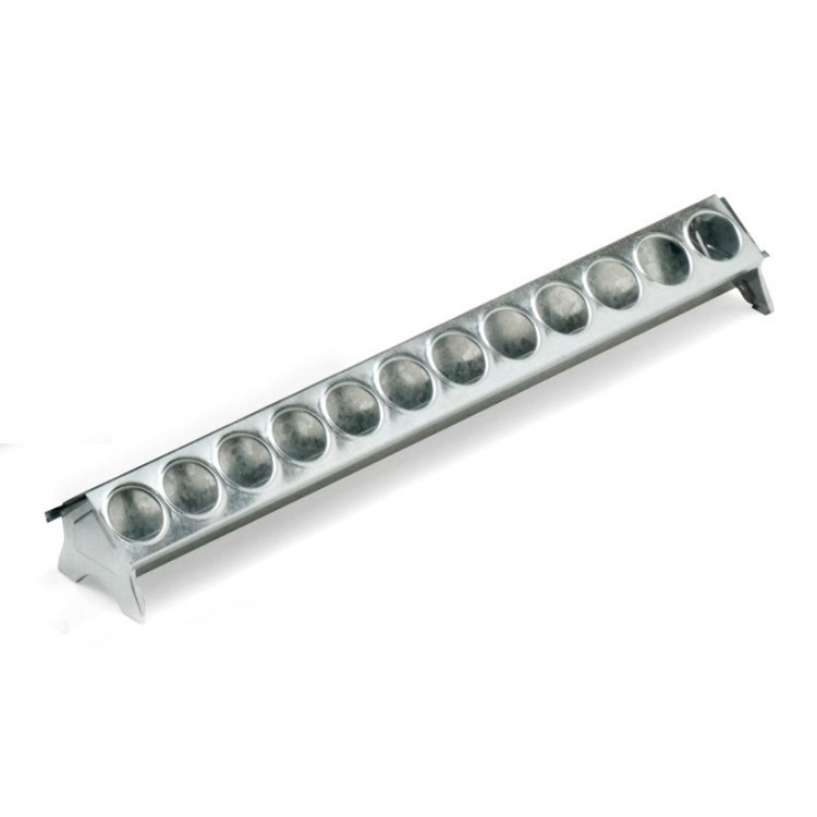 Hrănitoare metalică cu jgheab pentru păsări de curte - 50 cm - găuri rotunde