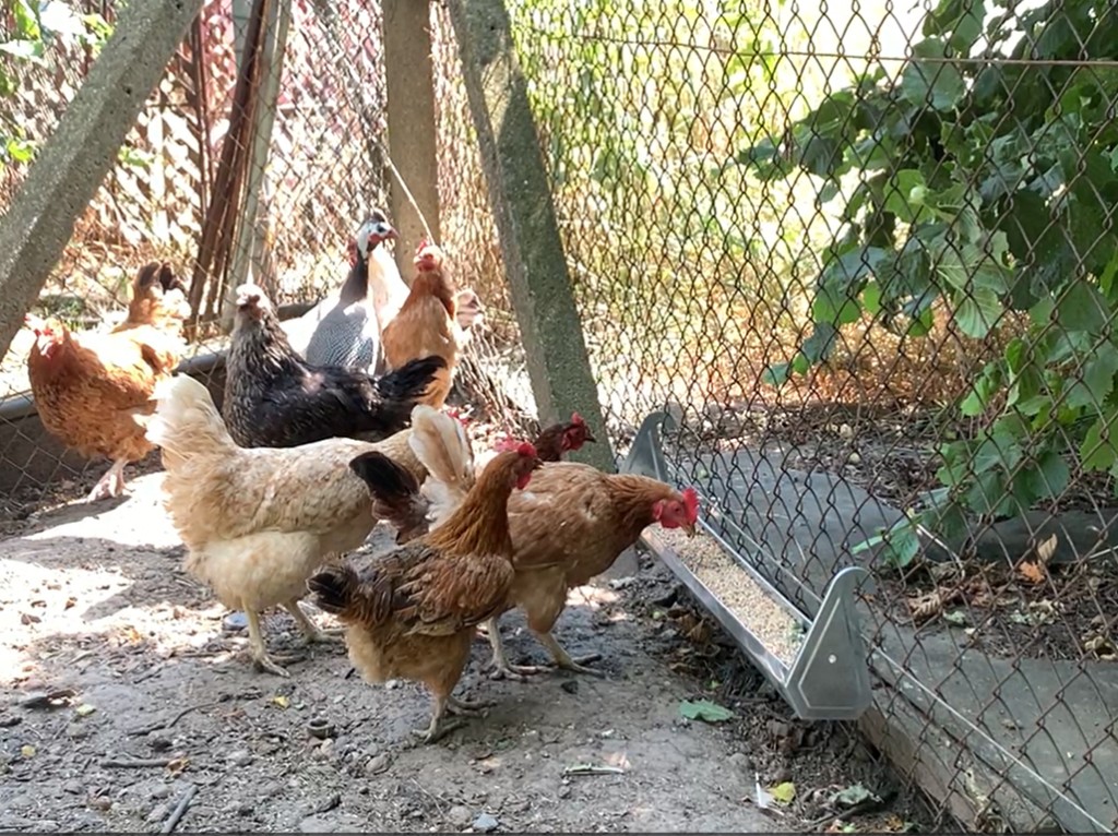 Hrănitoare suspendată pentru găini, prepelițe, cu dimensiunile de 10,5x80 cm, pentru agățare pe plasă, suprafață galvanizată durabilă, ușor de spălat.