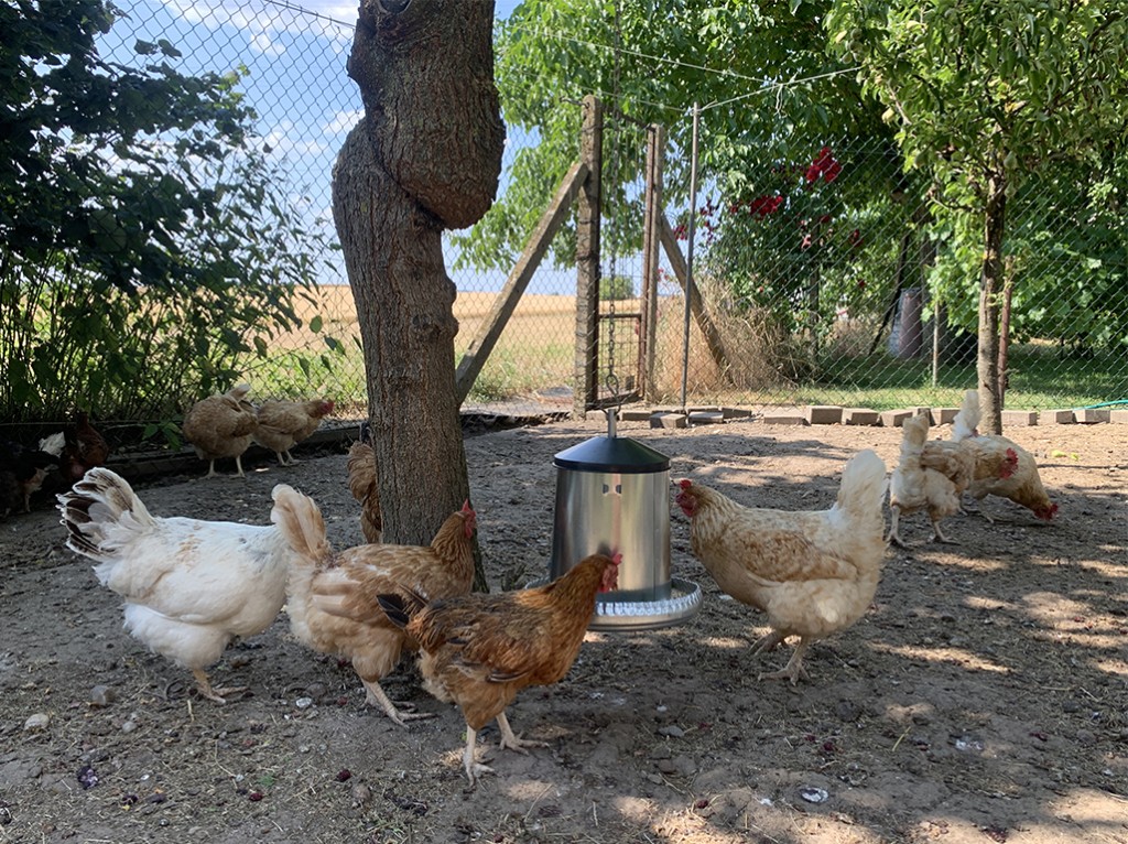 Hrănitor automat pentru găini și alte păsări de curte, capacitate pentru 5 kg de hrană, până la 30 de găini, poate fi agățat, suprafață galvanizată durabilă, ușor de spălat.