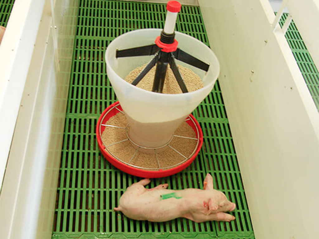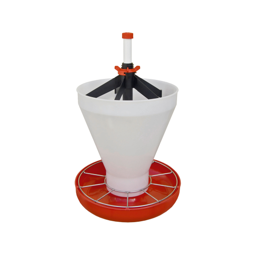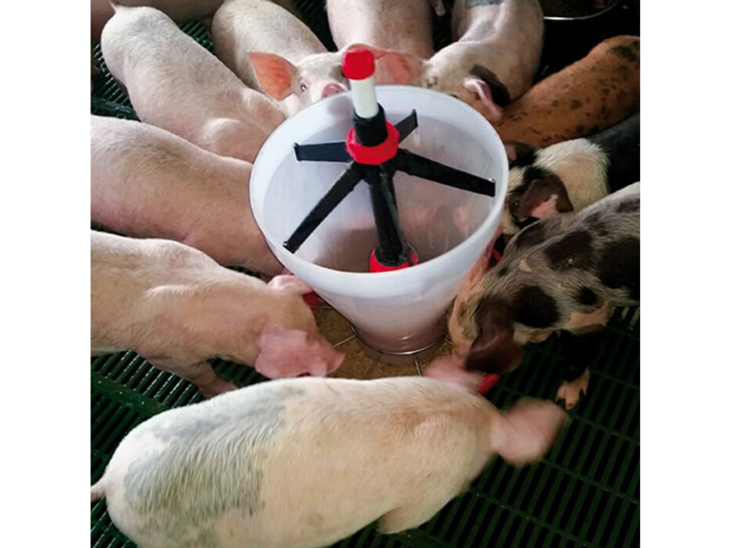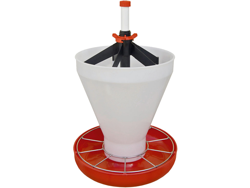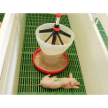 Hrănitor adaptiv cu buncăr, pentru hrănirea purceilor în timpul înțărcării, atașare simplă la grătar , întreținere ușoară, 10 locuri de hrănire, reglare a alimentării cu furaje , volum bol 9 l, volum buncăr 21 l , diametru bol 42,5 cm, înălțime hrănitor 68 cm.