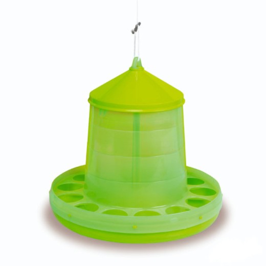 Hrănitorul poate fi așezat pe pământ sau legat de ureche cu sfoară pentru a crea o hrănitoare suspendată pentru găini.