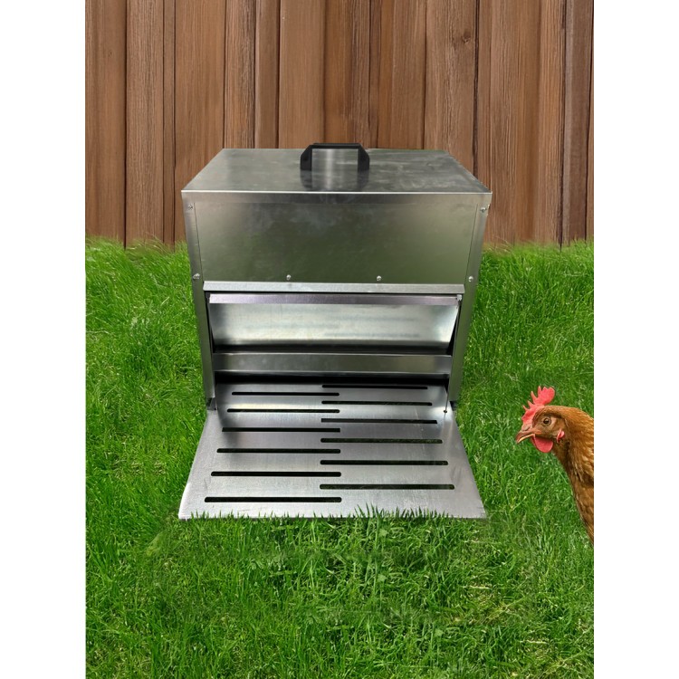 Cu un volum de 8 litri (aproximativ 5 kg de furaj), va oferi suficientă hrană pentru 12-16 găini.