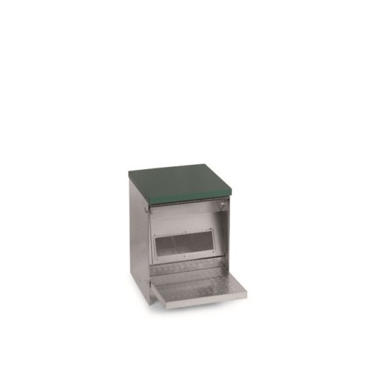Pâlnia este echipată cu o ușă acționată mecanic de găină, împiedicând rozătoarele să acceseze hrana.