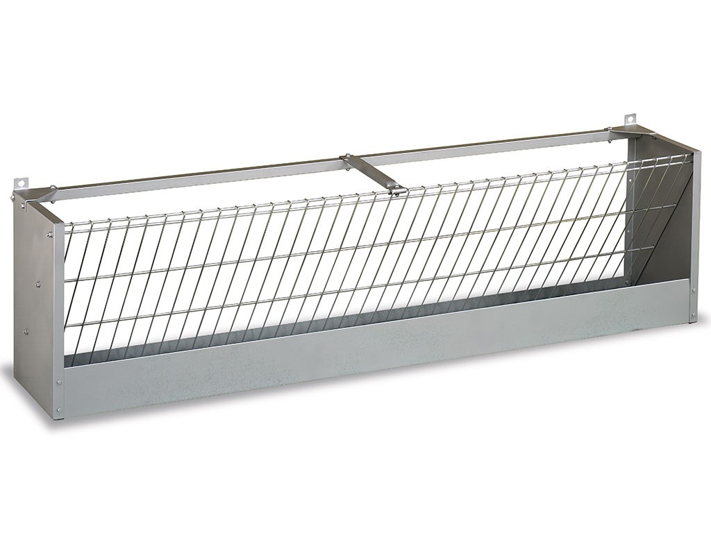 Iesle pentru fân, pentru oi și capre, din tablă galvanizată, fără panou posterior, montare pe perete, cu tavă de colectare, dimensiuni 200x36x52 cm.