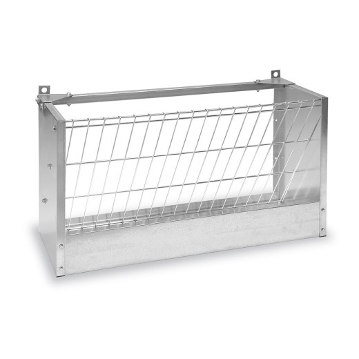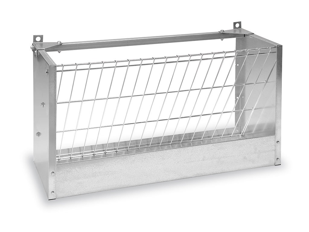 Iesle pentru fân, pentru oi și capre, din tablă galvanizată, fără panou posterior, montare pe perete, cu tavă de colectare, dimensiuni 98x36x52 cm.