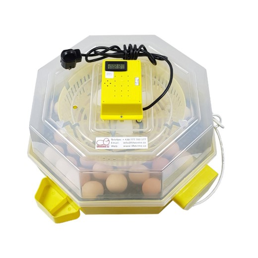Incubator de ouă potrivit pentru incubarea păsărilor de apă și a cocoșilor de munte - pentru găini, prepelițe, rațe, curcani, gâște și fazani. Cu întoarcere automată pentru până la 41 de ouă de găină - posibilitatea întoarcerii manuale a ouălor, cu control al temperaturii de la 35 la 40°C, cu control manual al umidității, cu rezervor de apă, cu termometru și higrometru.