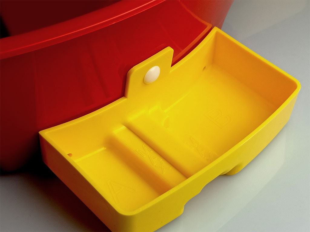 Umiditatea este reglată manual prin adăugarea manuală de apă în rezervorul extern , care drenează apa în canalele situate sub baza de eclozare, în capacul inferior al incubatorului. Temperatura optimă a apei completate este de aproximativ 25-30°C (nu se recomandă apa rece). Valoarea actuală a umidității din incubator este verificată pe afișajul panoului de control . Deoarece apa este adăugată în rezervorul extern în timpul eclozării, nu este nevoie să deschideți capacul incubatorului și acest lucru nu va perturba microclimatul din incubator.
