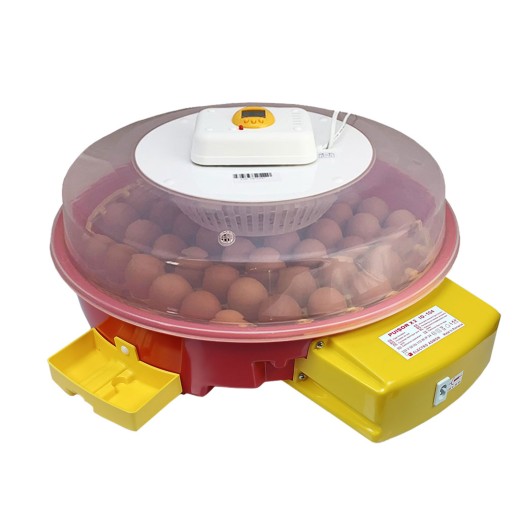 Incubator de ouă potrivit pentru incubarea păsărilor de apă și a păsărilor de curte care cresc vizuini, cu întoarcere automată, capacitate de 51 de ouă de găină, posibilitatea de întoarcere manuală a ouălor, fără control al temperaturii, setat la valoarea optimă, cu control manual al umidității, cu rezervor extern de reumplere cu apă , cu termometru, cu higrometru.