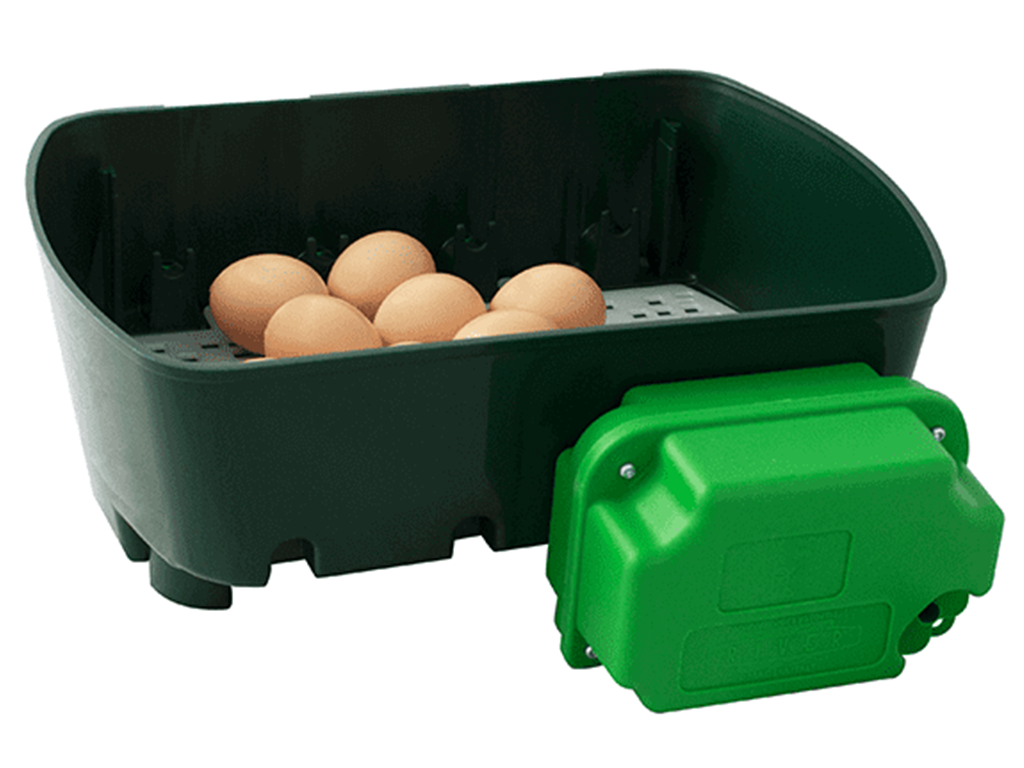 Incubator de ouă potrivit pentru incubarea păsărilor de apă și a păsărilor de curte care cresc vizuini, cu întoarcere automată, capacitate pentru 12 ouă de găină, posibilitatea de întoarcere manuală a ouălor, cu control digital al temperaturii, de la 30 la 40°C, cu control manual al umidității, cu rezervor de alimentare cu apă, cu termometru.